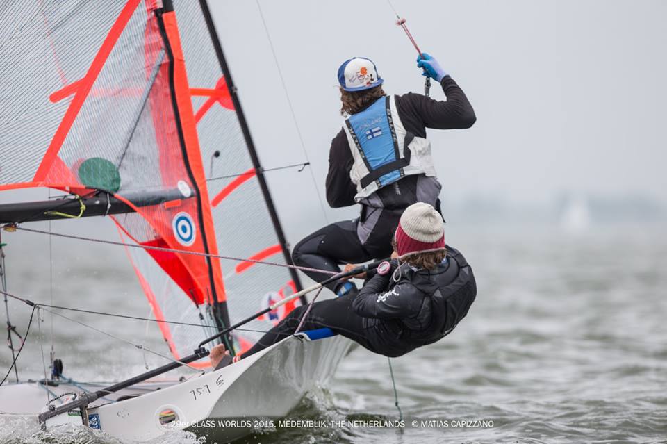 Finalseglingarna inleddes i utmanande förhållanden, korta branta vågor och en ostadig vind på 4-7m/s med snabba och stora vindvrid. Elias och Oliver inledde bra med en 12:e och en tredje placering. De övriga finländska båtarna hade svårt att utmana täten i silverfinalen. Inför dagens tredje segling vred vinden 180 grader. Under första kryssen kom det ett stort vindvrid mot vänster ute på vänsterkanten. De finländska båtlagen låg alla ute på högerkanten av banan och hade sedan en svår uppgift att segla upp sig på den korta banan.