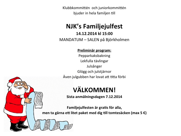 NJK:s familjejulfest – Sista chansen att anmäla sig
