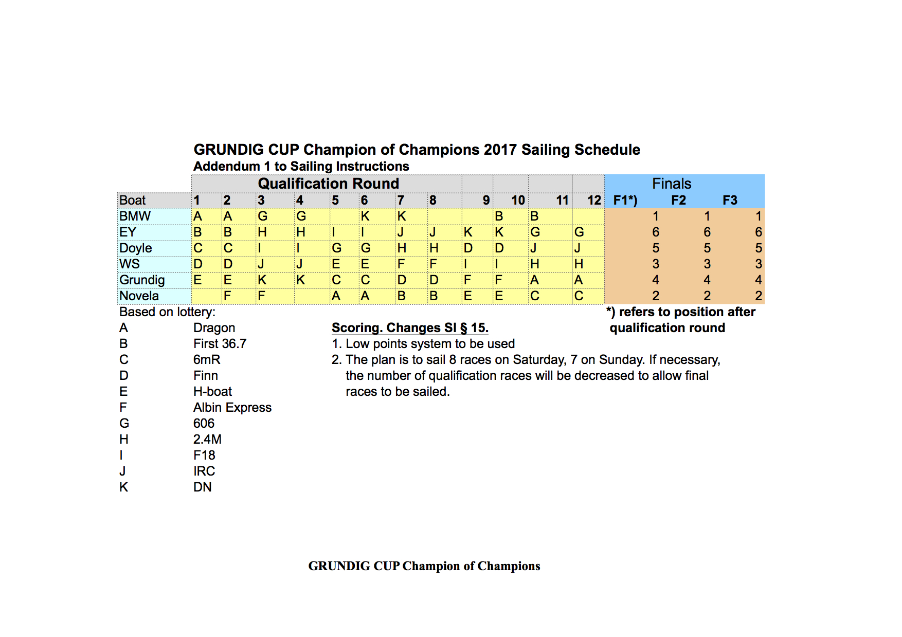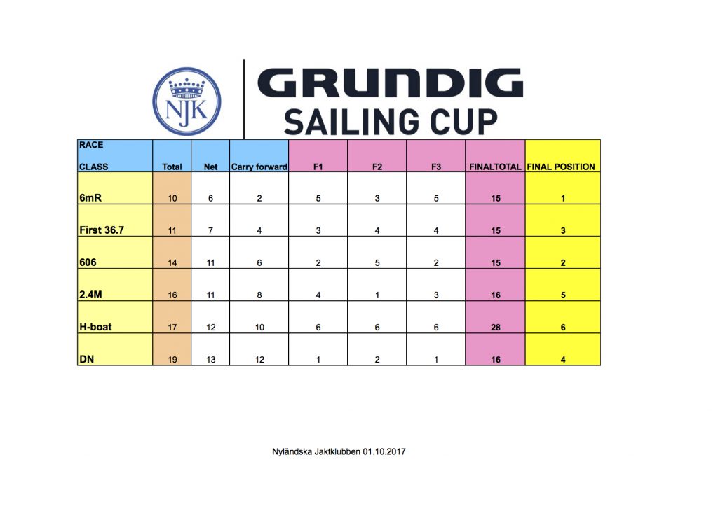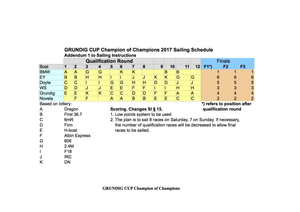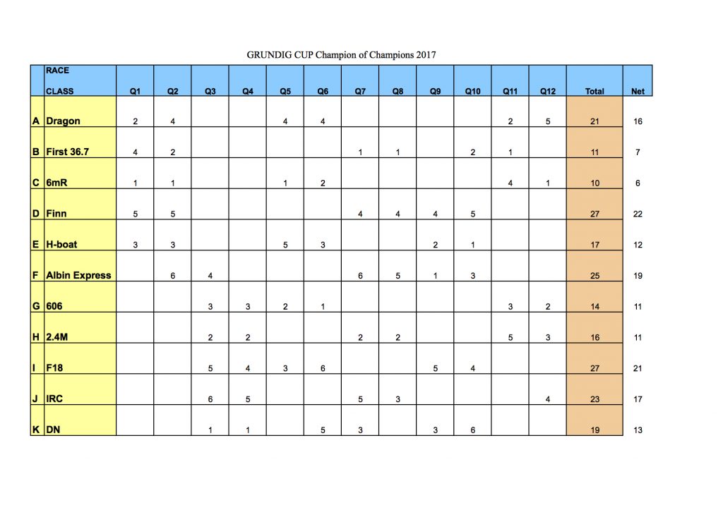 Under veckoslutet 30.9-1.10 avgörs vilket som är Finlands bästa kappseglingsteam. Då seglas Grundig Cup Champion of Champions – tävlingen till vilken inbjuds de olika båtklassernas finska mästare och klassmästare. Inbjudan riktas till vinnarna i de klasser som hade FM eller klassmästerskap utan åldersrestriktioner år 2017.