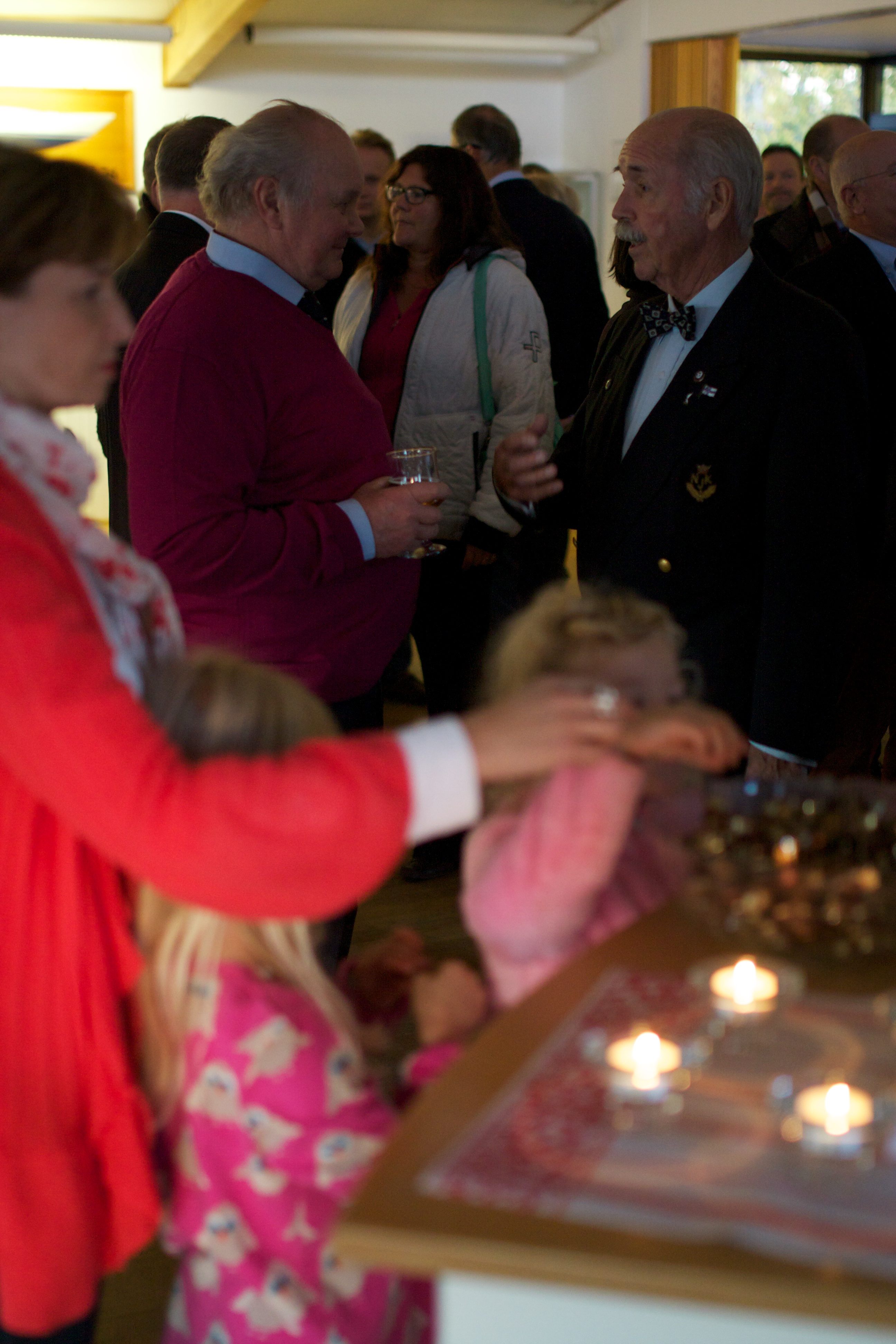 Vädret var denna höstkväll i oktober rätt kyligt men vackert så det kändes motiverat att hala klubbflaggan.  Ett 60-tal medlemmar hade samlats på Björkholmsterassen i god tid före kl. 18.07. Flaggan halades traditionsenligt med kanonskott. Kommodor Claes Tallberg höll tal strax efter att flaggan halades, men strax fick vi gå in i värmen i Mandatum-salen. Vi serverades grillad hjortfilé med trattkantarellstuvning och annat gott där till. Underbart gott!